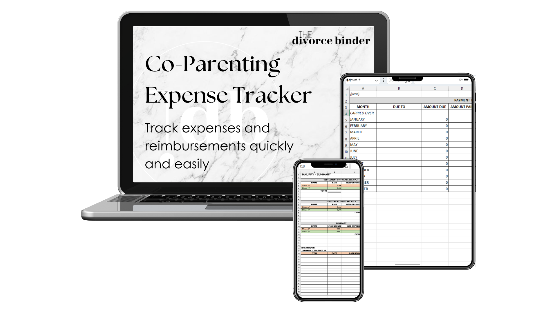 The Co-Parenting Expense Tracker is an easy-to-use Excel spreadsheet template that offers a simple solution to managing shared expenses between co-parents. It is easy to access on any computer, phone or tablet being compatible with Google Sheets and Numbers.